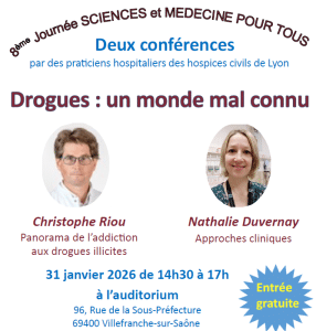 Travaux de référence Drogues : un monde mal connu Journée Sciences et Médecine pour Tous Villefranche-sur-Saône 31 janvier 2026 Lire Plus >